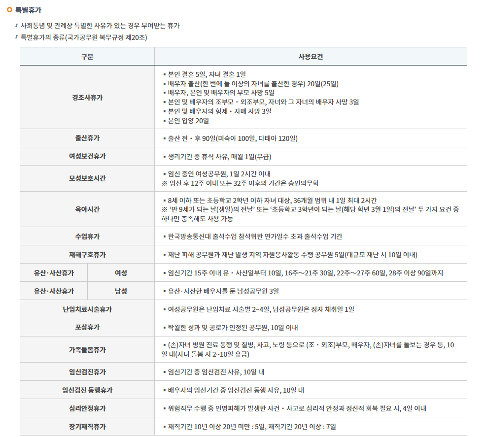 공무원 경조사 휴가일수, 특별휴가